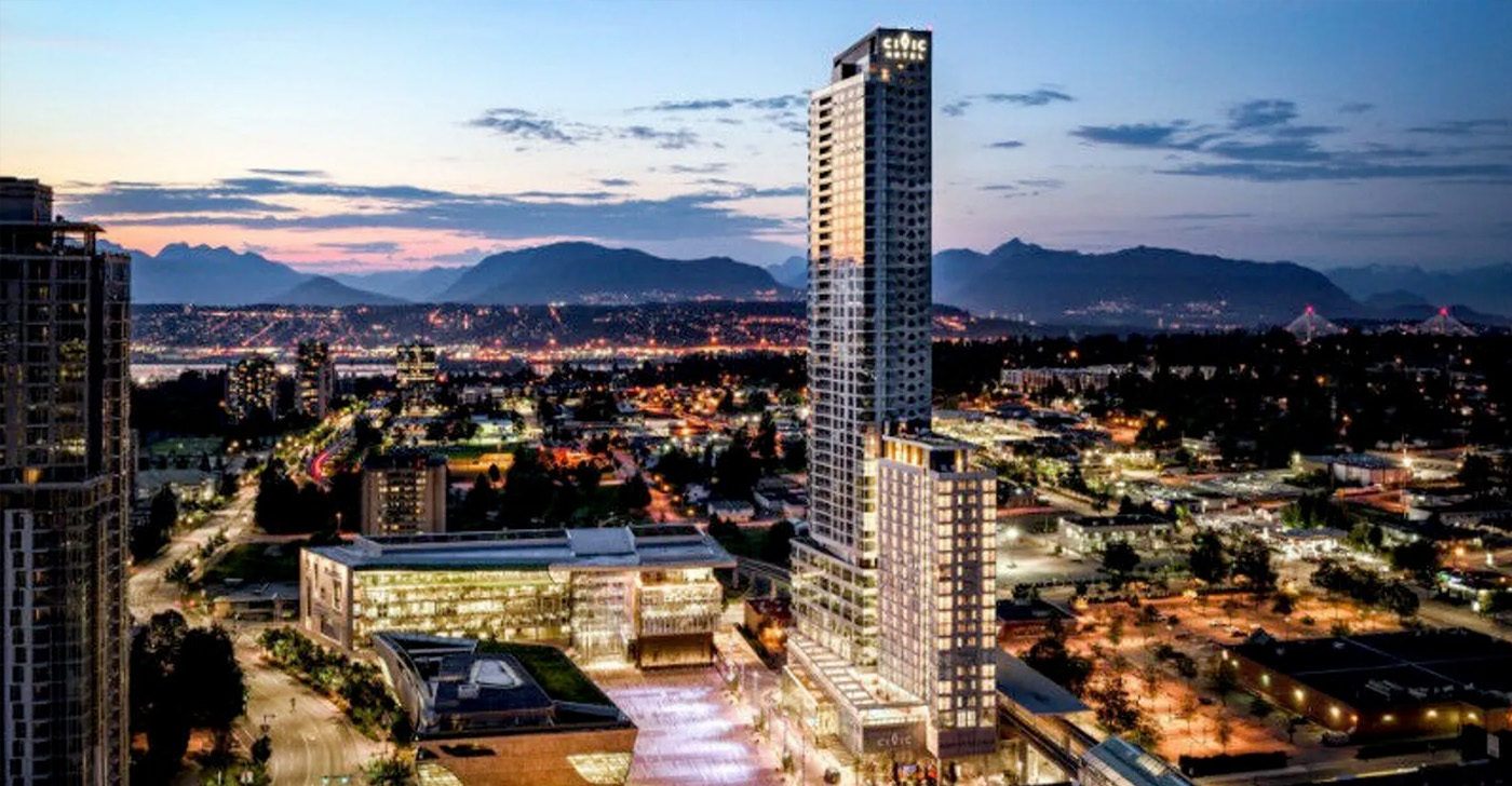 Do not miss this opportunity to live in this 1 year old iconic building in Surrey central. With PANORAMIC city, mountain and water views, this 1 bedroom suite has stainless steel appliances, hardwood floors, premium millwork cabinetry with built-in organizers and accent lighting. Comes with 1 parking stall, 1 locker, Geothermal heating and cooling located on the 49th floor (only two levels above) of 3 Civic Plaza is a premium hotel + residences complex directly across from Surrey Central Skytrain with concierge. Steps away to skytrain station, shopping mall and recreation centre. 3 universities (KPU, Two SFUs) are within walking distance. A restaurant and Prado Cafe are also in the lobby area of the building.